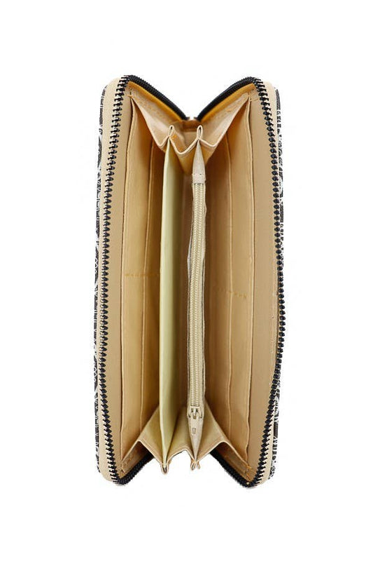 Paisley Print Zippered Faux Leather Wallet