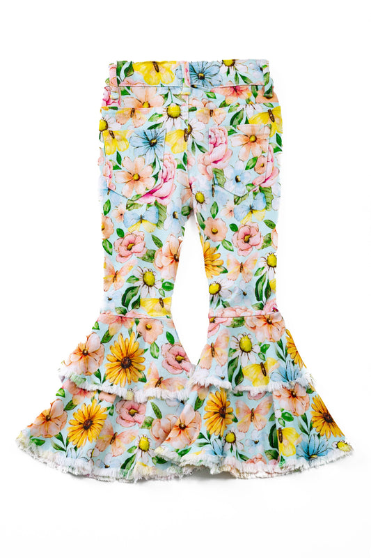 Garden Symphony Milk Silk Long Flutter Sleeve Dress