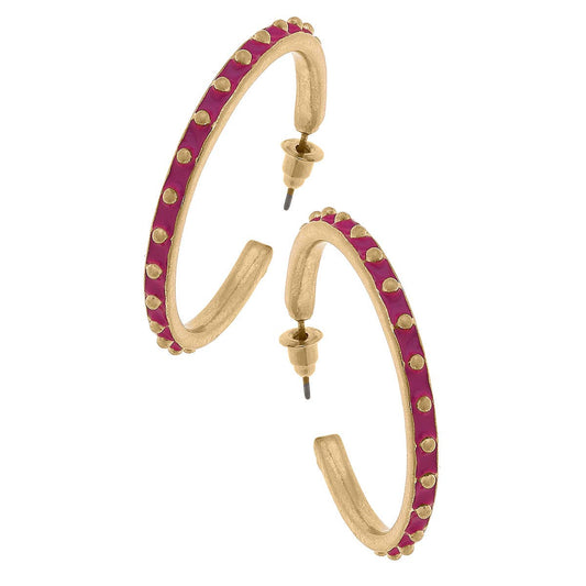 Enamel Studded Metal Hoop Earrings: Purple