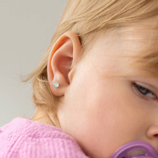 Opal Button 4mm Sterling Silver Earrings