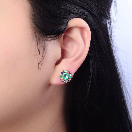 Green/Aqua Halo Stud Earrings