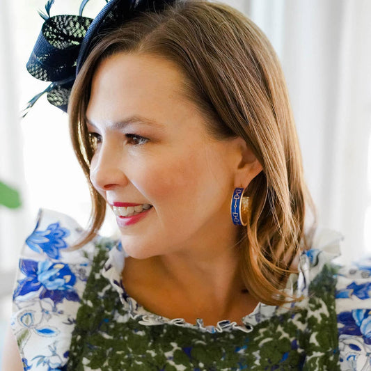 Enamel Horsebit Hoop Earrings: Blue