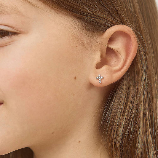 Tiny Glimmering Cross Children's Jewelry Set in Sterling Silver