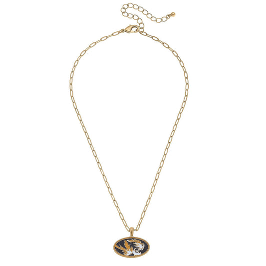 Missouri Tigers Enamel Pendant Necklace in Black/Gold