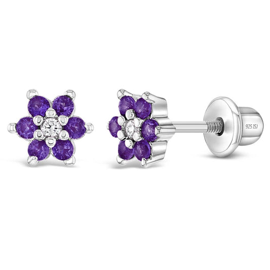 Purple Cluster Flower Sterling Silver Earrings