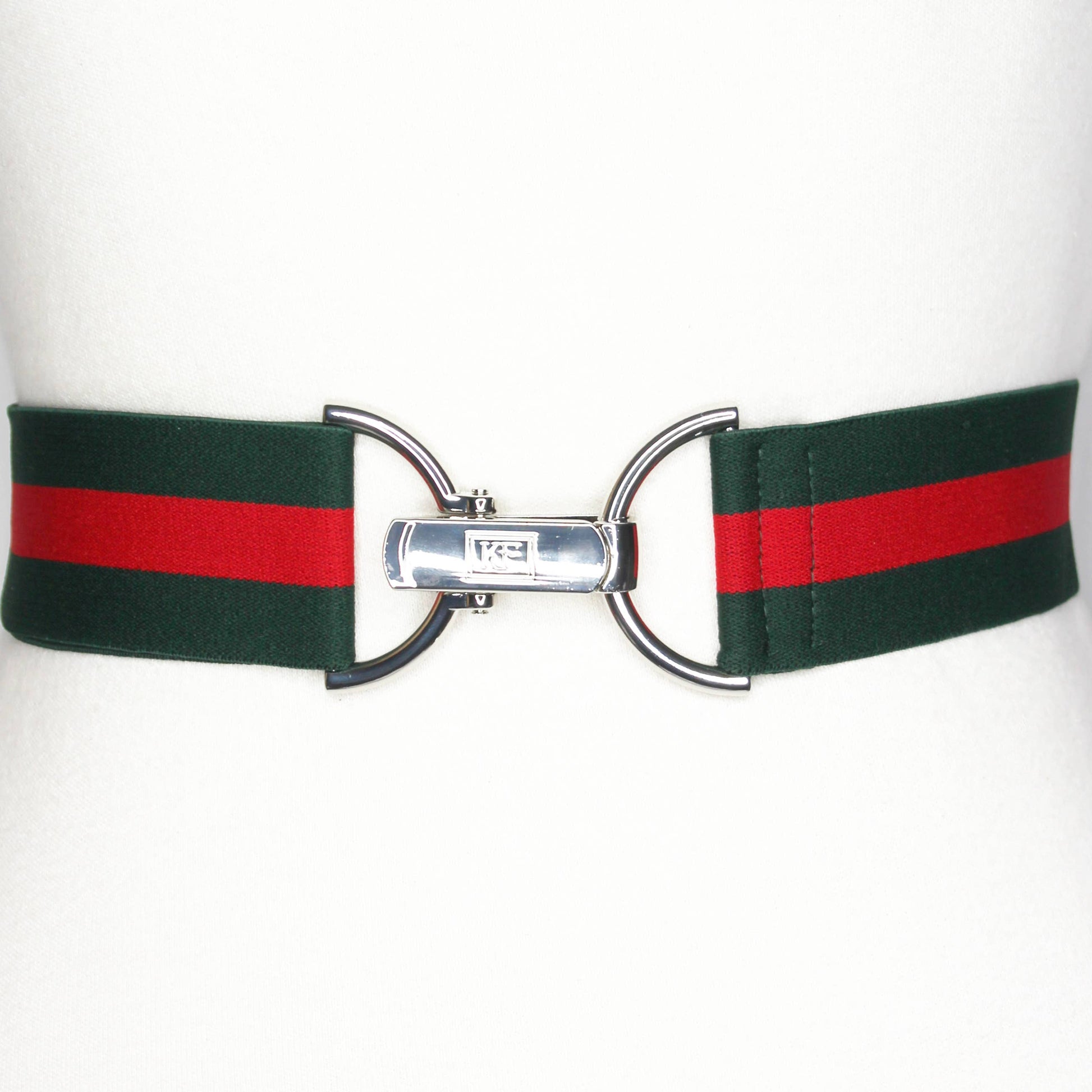 Red and Green Stripe Elastic belt in 1.5" width. The slide allows the belt to be adjustable from a 20 inch waistline up to 60 inches. Once adjusted, the slide will stay snugly in place. This popular belt comes in 1.5" width and will fit most jeans, slacks, and riding breeches.